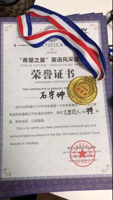 希望之星的英语风采大赛也不是第一次参加了,但是自己一个人去另一个城市比赛还是第一次。从海选到大连市决赛在到辽宁省决赛,每一个环节我都在认真的准备并力求效率的最大化。并且在大连市决赛和辽宁省决赛的准备中,受到曾经该Vivianna老师的帮助和指导,使我对整个比赛有了更全面的认识。