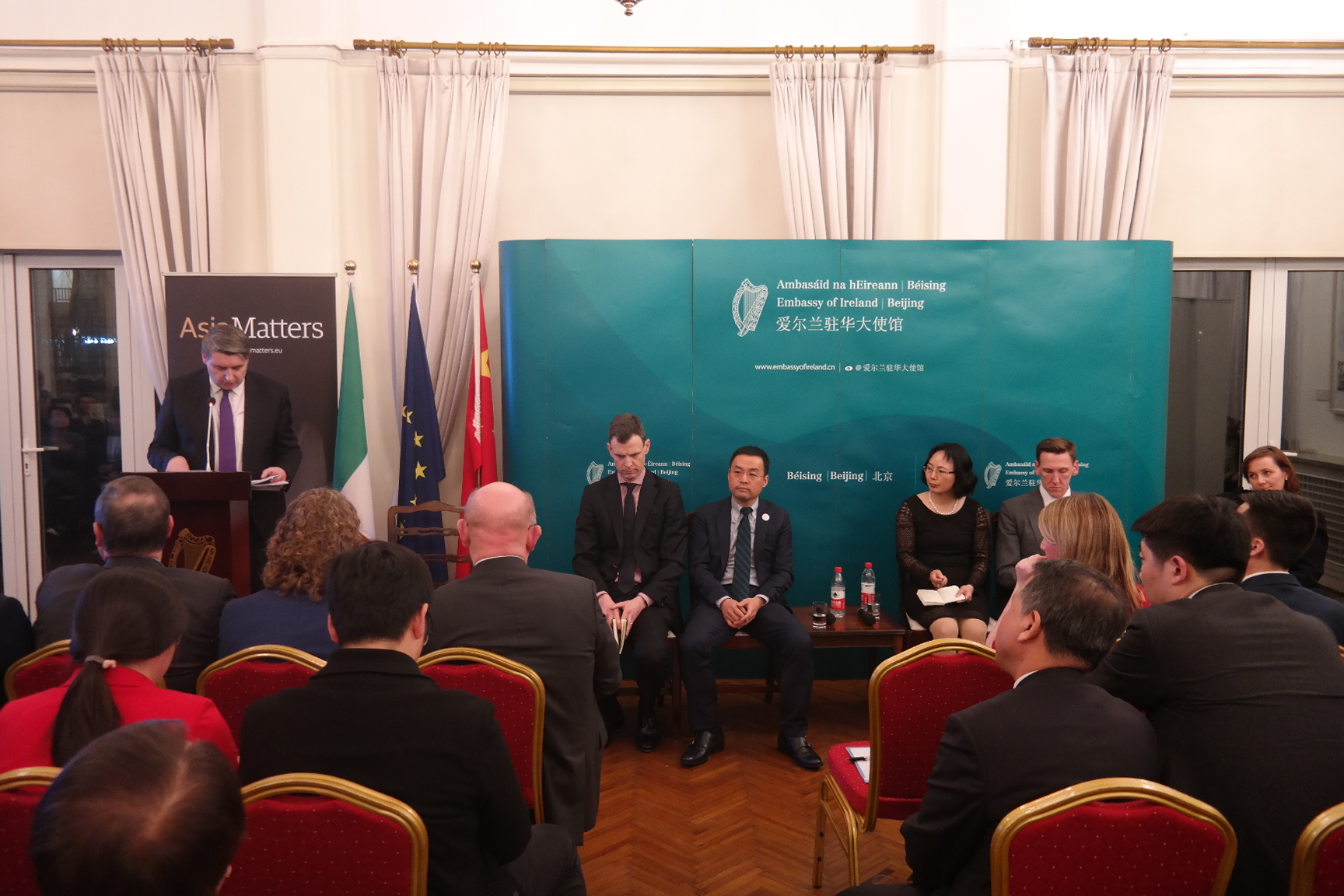 时值中国、爱尔兰两国建交40周年之际,爱尔兰知名智库亚洲事务论坛(Asia Matters)和爱尔兰驻华大使馆于2019年2月28日联合举办了中爱商业合作伙伴圆桌论坛。应李修文大使(H.E Eoin O'Leary)邀请,北京工业大学北京-都柏林国际学院院长吴文英教授、代理教务长Ailish O'Halloran博士出席该论坛。该论坛邀请来自农业产业、科技产业、教育产业等的领军人物分享了中欧经贸合作的最佳路径和成功经验。李修文大使(H.E Eoin O'Leary)致开幕辞,亚洲事务论坛主席、前爱尔兰财政部长Alan Dukes先生主持。